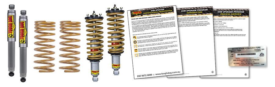 The GVM of any vehicle is the weight in kilograms that the manufacturer has specified as being the maximum that the vehicle can weigh when fully laden. Tough Dog GVM upgrades allow a vehicle to be certified to carry a greater amount than the original manufacturer, without breaching applicable ADRs or laws.
